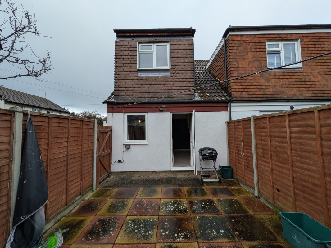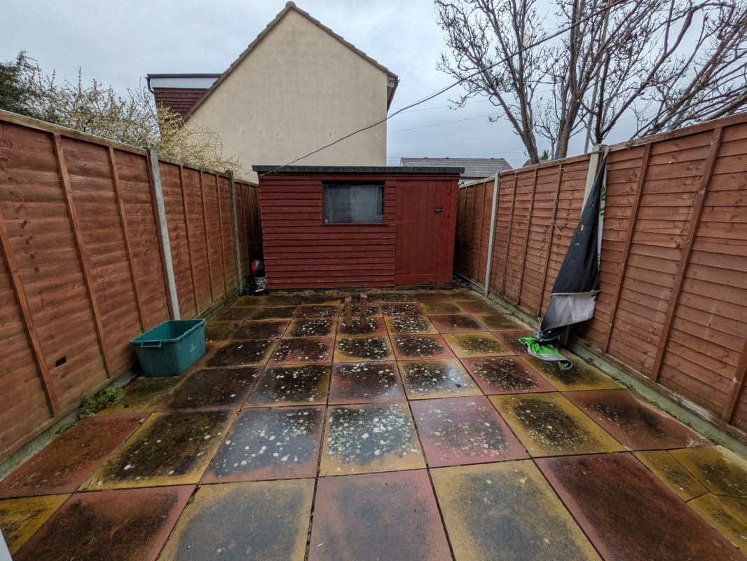 The rear garden is designed for low maintenance, laid entirely to patio slabs. A good-sized shed provides ample storage.